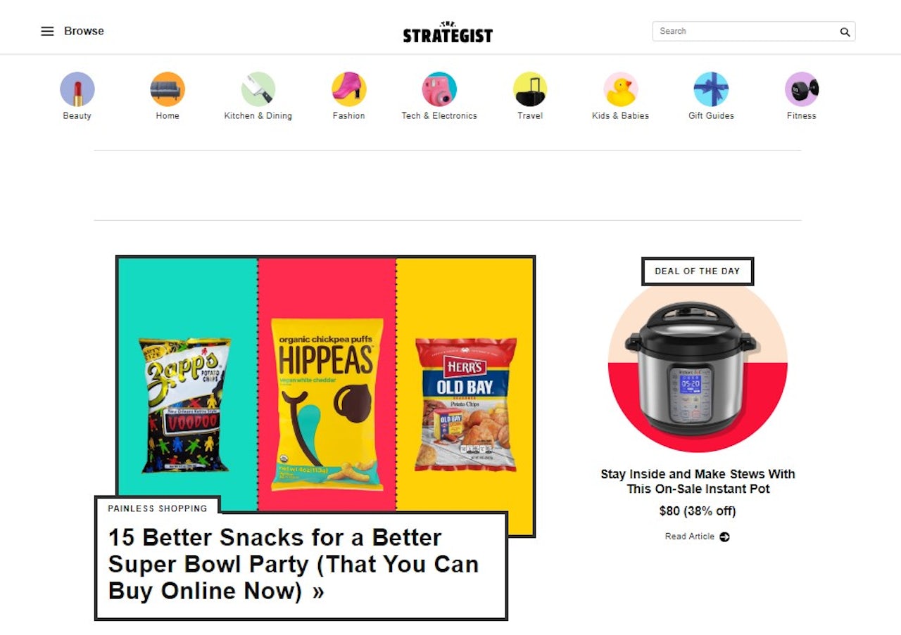 As we have established, The Strategist, from New York Magazine, is the “hot” product recommendation website right now. It features very nice design, and much like Kinja Deals, it will help you save money on an Instant Pot. It loses points, however, because a lot of its articles are just lists of cheap crap on Amazon that looks kinda nice.